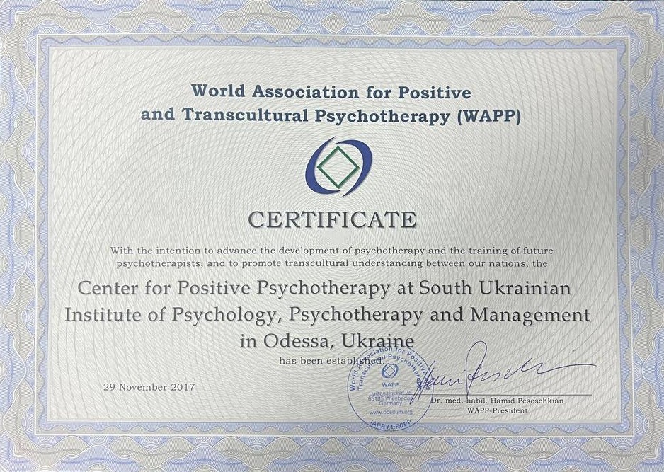 ПІППУ є акредитованим навчальним центром World Association for Positive and Transcultural Psychotherapy (WAPP), Німеччина.
